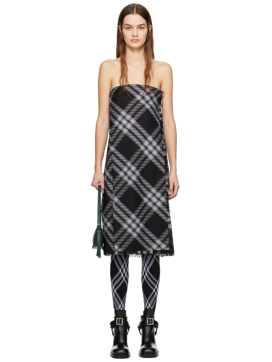 Plain-woven wool dress. Jacquard check pattern, pleats, and frayed edges throughout. · Wrap construction · Straight neck · Concealed zip closure at front · Pin-buckle straps at side seam · Partially lined Supplier color: Monochrome Body: 100% wool. Trim: 100% calfskin. Made in Poland 241376F054015