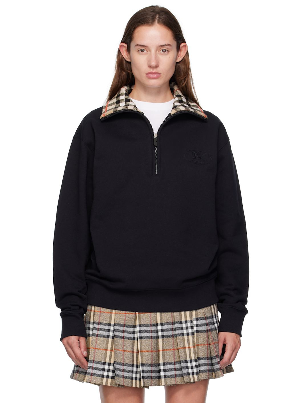 French terry polo. · Rib-knit stand collar, hem, and cuffs · Half-zip closure · Logo embroidered at chest · Dropped shoulders · Check pattern at inner collar Supplier color: Black Body: 100% cotton. Trim: 99% cotton, 1% elastane. Made in Portugal 252376F108000