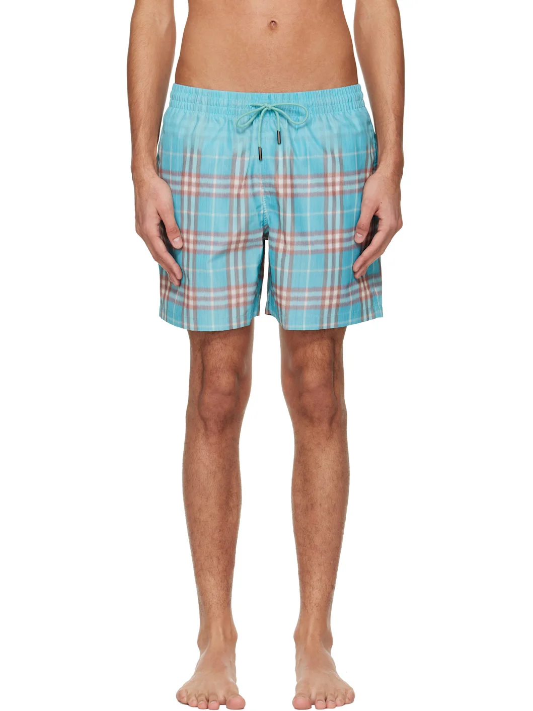 Taffeta swim shorts. · Gradient and check pattern throughout · Drawstring at elasticized waistband · Three-pocket styling · Brief-style mesh lining Supplier color: Atom blue 100% polyester. Made in Thailand 261376M208003