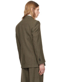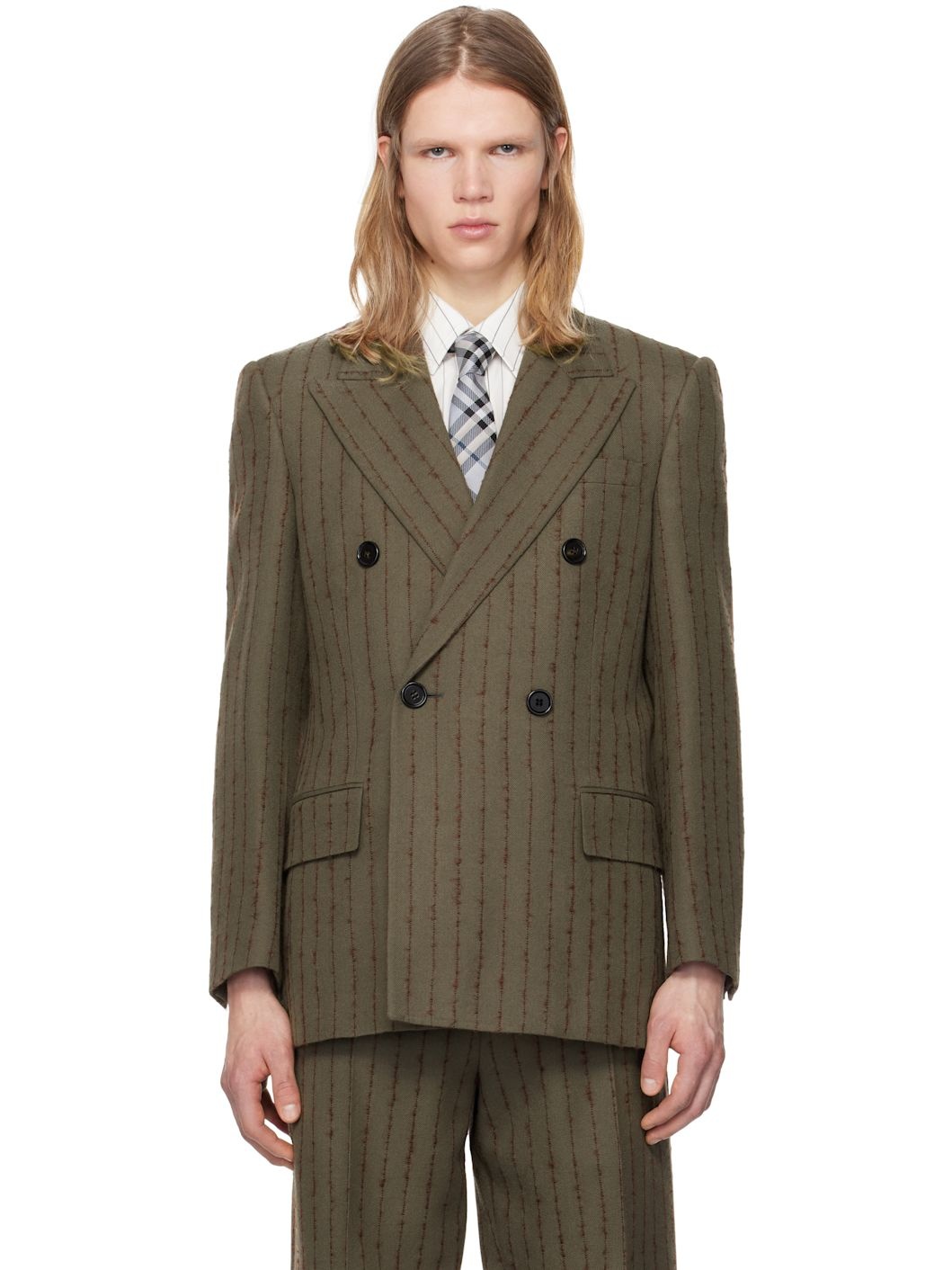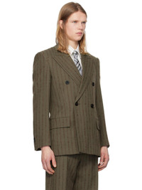 Wool-blend tweed blazer. Jacquard pinstripes throughout. · Peaked lapel · Double-breasted button closure · Welt pocket and flap pockets · Padded shoulders · Three-button surgeon's cuffs · Central vent at back hem · Welt pockets at interior · Full viscose twill lining · Buffalo horn hardware Supplier color: Coal/Fig Body: 96% wool, 3% mohair, 1% polyamide. Trim: 100% buffalo horn. Made in Italy 251376M195000