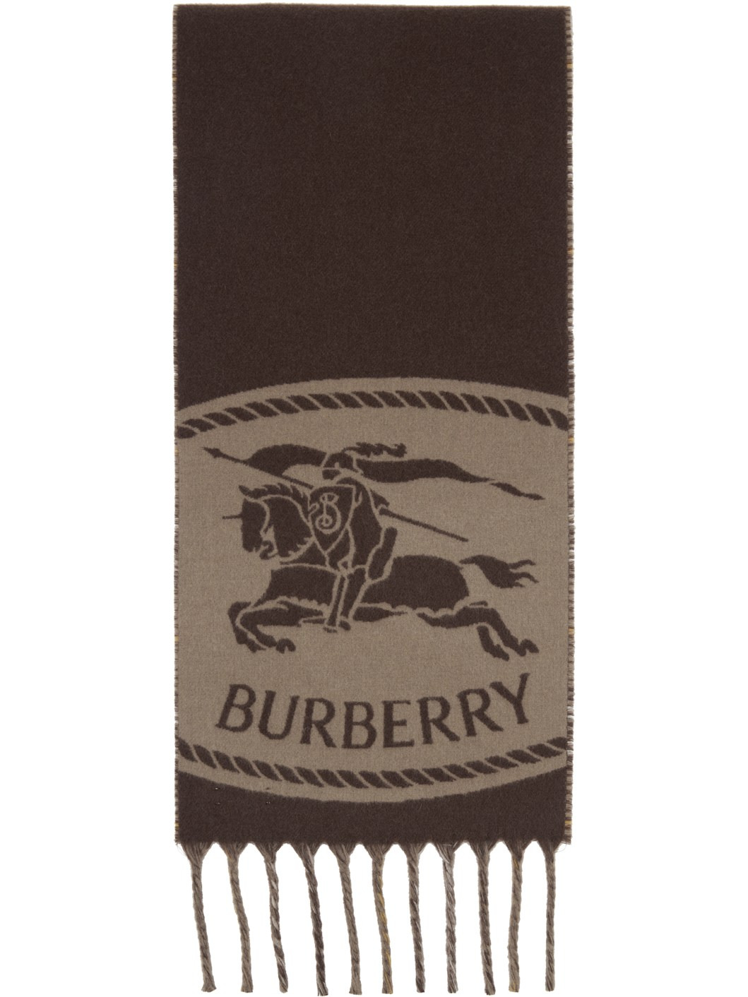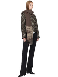 Rectangular cashmere flannel scarf. · Jacquard logo graphic at face · Fringed detailing at ends · Check pattern at back face · L66" x W11" Supplier color: Vole 100% cashmere. Made in Italy 252376F028023