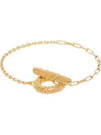 Chain-link bracelet in gold-tone brass. Etched pattern and logo engraved at toggle. Supplier color: Gold Brass. Made in Italy 261376F020002