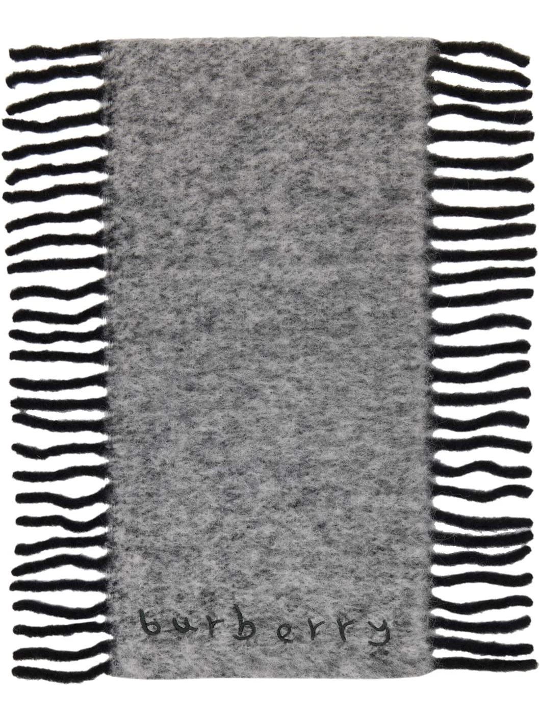 Rectangular brushed woven alpaca-blend scarf. · Marling throughout · Fringed detailing at sides · Logo embroidered at face · Logo patch at back face · L62.5" x W13" Supplier color: Black/Calico White 78% alpaca wool, 22% polyamide. Made in Italy 261376F028021