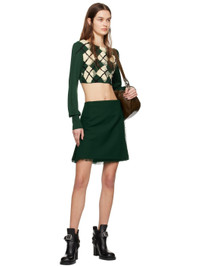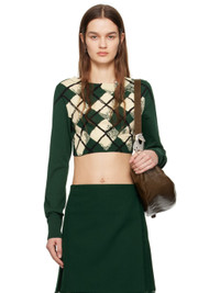 Rib knit cotton sweater. Intarsia argyle pattern throughout. · Rib knit boat neck, hem, and cuffs · Safety-pin hardware at collar · Cropped hem Supplier color: Ivy 100% cotton. Made in Italy 241376F096000