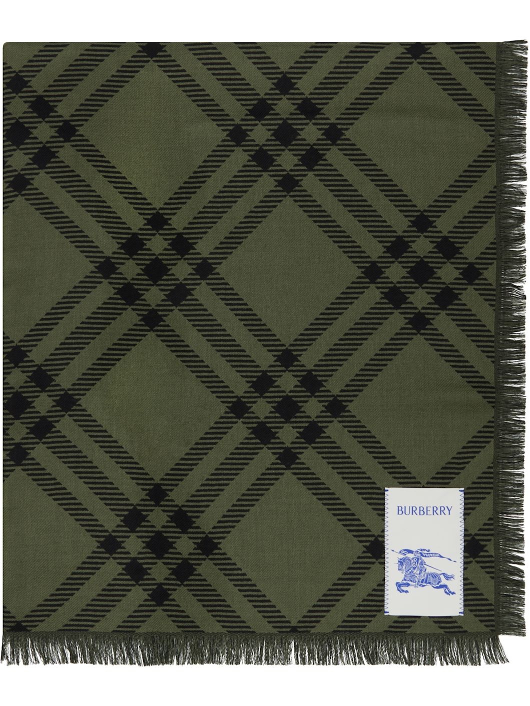 Rectangular wool- and silk-blend flannel scarf. · Check pattern throughout · Logo patch at face · Fringed detailing at edges · L78.75" x W25.5" Supplier color: Shrub/Black 70% wool, 30% silk. Made in Italy 252376M150010