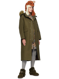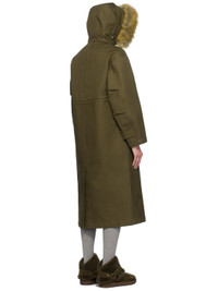 Cotton gabardine coat. · Drawstring and detachable faux-fur trim at hood · Two-way zip closure and press-stud placket · Concealed bungee-style drawstring at waist · Press-stud flap pockets · Logo plaque and utility zip pocket at sleeve · Press-stud tab at cuffs · Gabardine lining Supplier color: Loch Body: 100% cotton. Trim: 100% polyester. Lining: 100% cotton. Made in Italy 242376F059001
