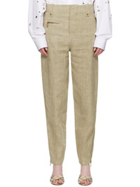 Loose-fit linen hopsack trousers. · Belt loops · Adjustable cinch tabs at waistband · Four-pocket styling · Zip fly · Central seam at legs · Zip vent at cuffs · Cinch tabs at back waistband · Partial plain-woven cotton lining · Antiqued gold-tone hardware Supplier color: Khaki/Milk Body: 100% linen. Lining: 100% cotton. Made in Italy 251376F087002