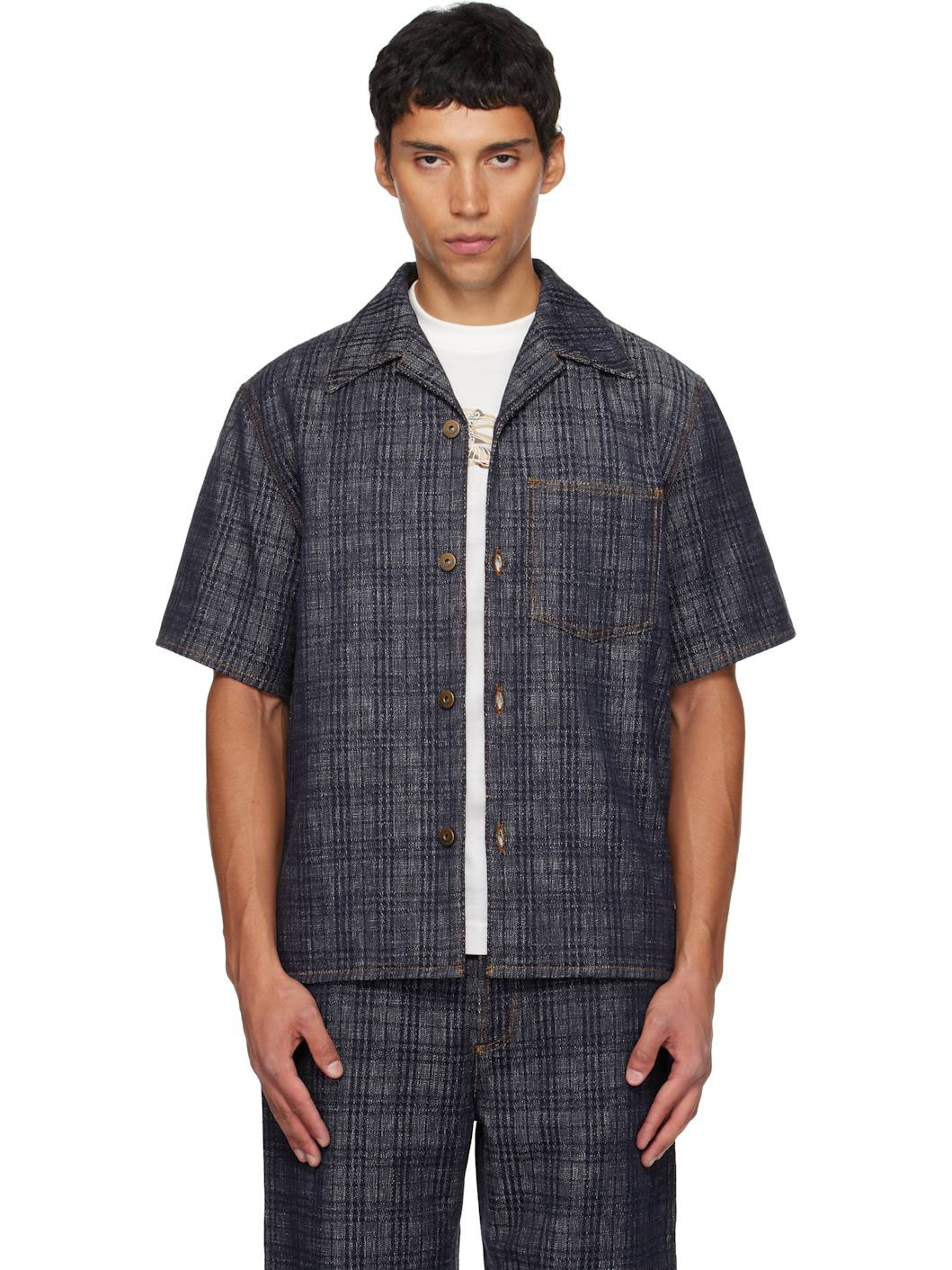 Navy Relaxed Fit Check Denim Shirt