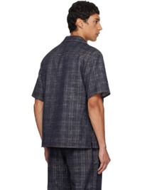 Non-stretch denim shirt. · Check pattern throughout · Open spread collar · Button closure · Patch pocket at chest · Vented side seams · Contrast stitching in tan Supplier color: Indigo blue 100% cotton. Made in Italy 252376M192018