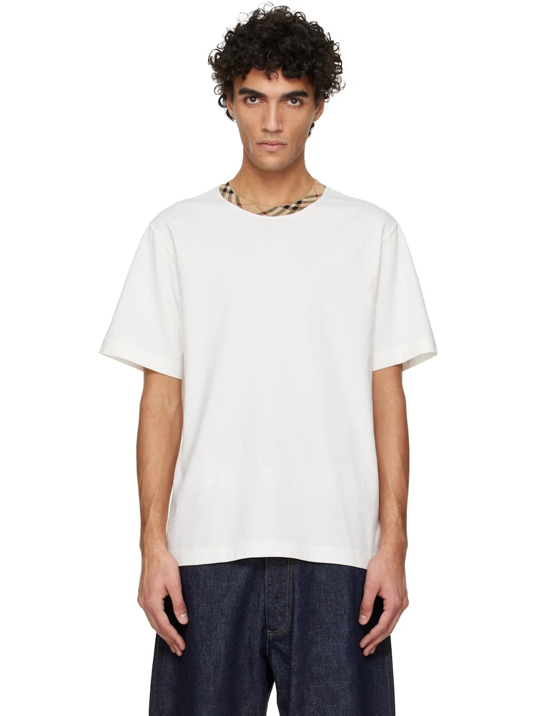Cotton jersey T-shirt. Check pattern at rib-knit crewneck. Supplier color: Chalk Body: 100% cotton. Trim: 91% cotton, 7% polyamide, 2% elastane. Made in Portugal 261376M213037