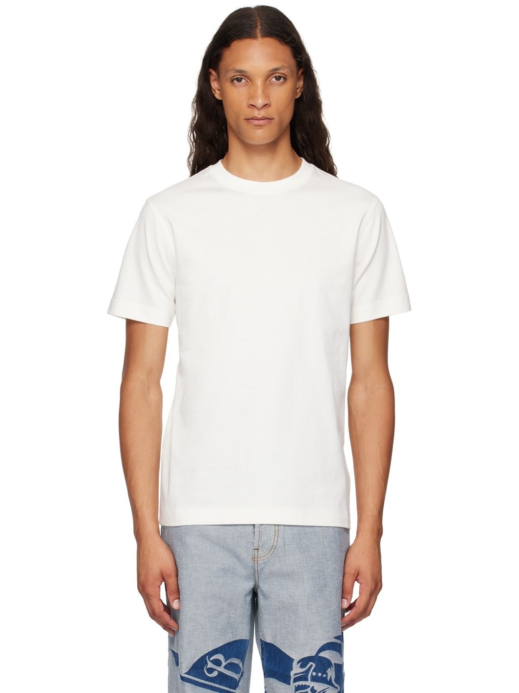 Slim-fit organic cotton jersey T-shirt. · Rib knit crewneck · Graphic flocked at back · Logo printed at back Supplier color: Chalk 100% organic cotton. Made in Italy 242376M213010