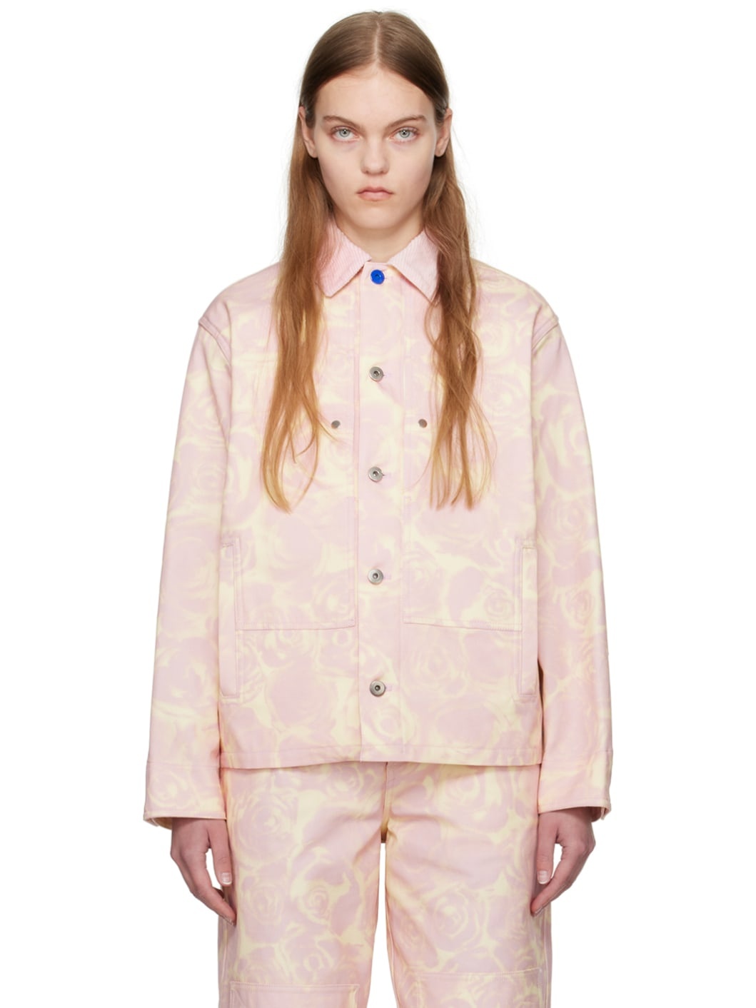 Cotton canvas jacket. Floral pattern printed throughout. · Corduroy trim at spread collar · Button closure · Welt pockets · Dropped shoulders · Adjustable single-button barrel cuffs Supplier color: Cameo 100% cotton. Made in Romania 241376F063008
