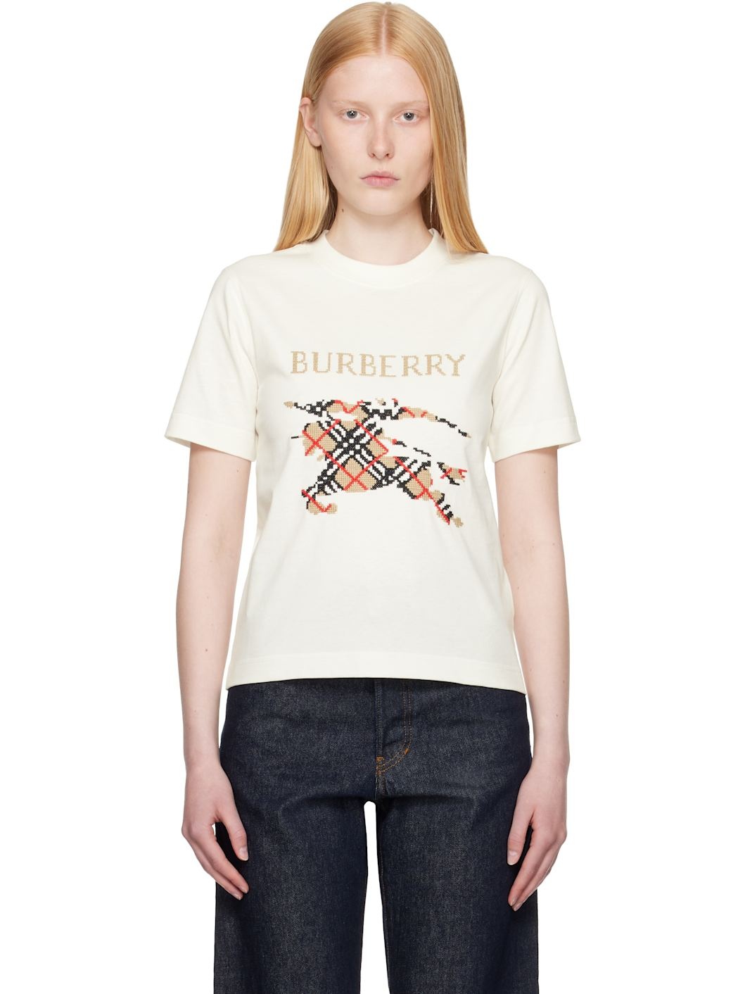 Cotton jersey T-shirt. · Rib-knit crewneck · Intarsia logo and logo graphic at front Supplier color: Chalk Body: 100% cotton. Trim: 97% cotton, 3% elastane. Made in Portugal 252376F110001