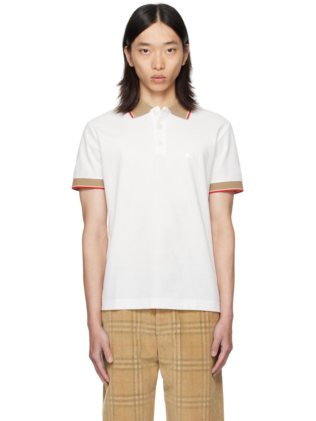 Cotton pique polo. · Jacquard logo at spread collar · Stripes at collar and cuffs · Three-button placket · Tennis-tail hem Supplier color: Chalk Body: 100% cotton. Trim: 78% cotton, 18% polyamide, 4% elastane. Made in Portugal 252376M212013