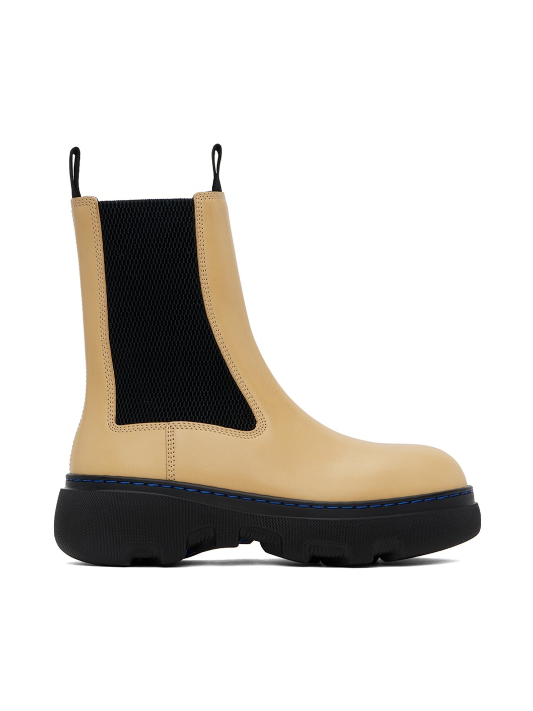 Ankle-high buffed calfskin Chelsea boots in yellow. · Webbing pull-loops at collar · Elasticized gusset at sides · Treaded rubber sole Supplier color: Custard Upper: calfskin, textile. Sole: rubber. Made in Italy 241376F113004