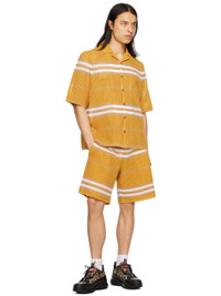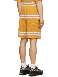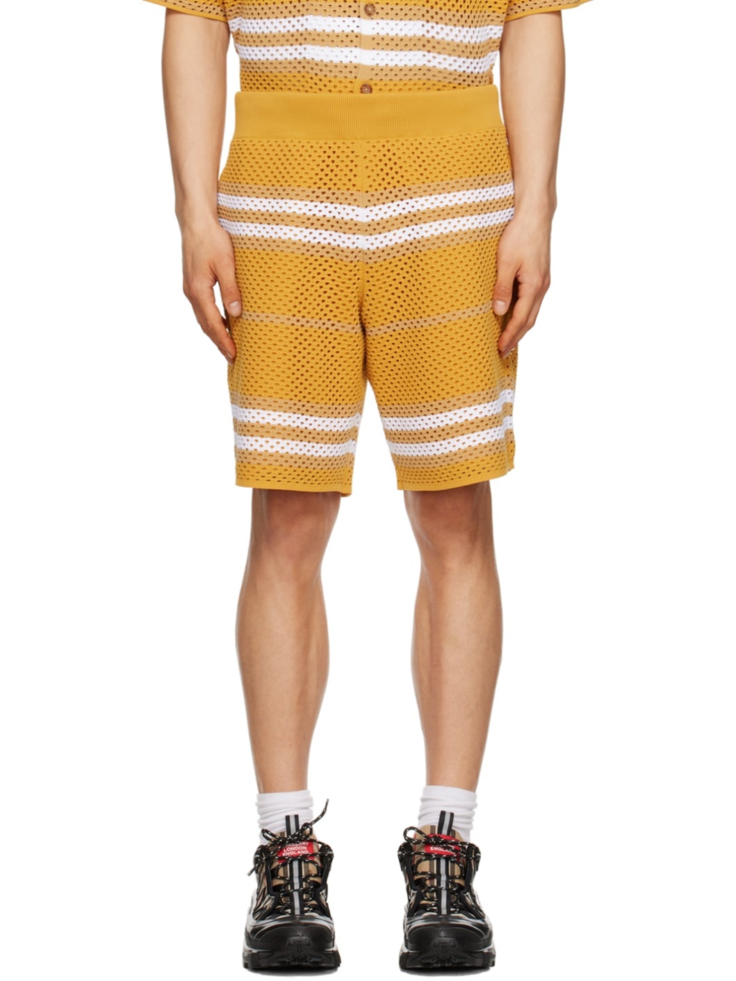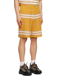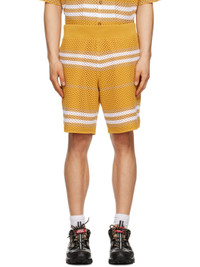 Polyester pointelle shorts. Stripes throughout. · Concealed drawstring at elasticized waistband · Two-pocket styling · Full stretch jersey lining Supplier color: Marigold Body: 100% polyester. Lining: 75% polyester, 23% polyamide, 2% elastane. Made in Italy 231376M193008