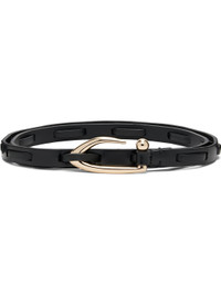 Buffed leather belt. · Interlaced lambskin trim throughout · Hook-eye fastening · W0.25" Supplier color: Black Leather, lambskin. Made in Bulgaria 252289F001003
