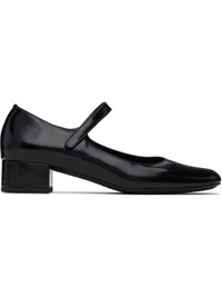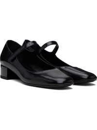 Polished leather Mary Jane-style heels. · LWG-certified leather · Square toe · Elasticized strap at vamp · Covered block heel with rubber injection · Leather sole · Heel: H1.25" Supplier color: Black Upper: leather. Sole: leather, rubber. Made in Portugal 252289F122010