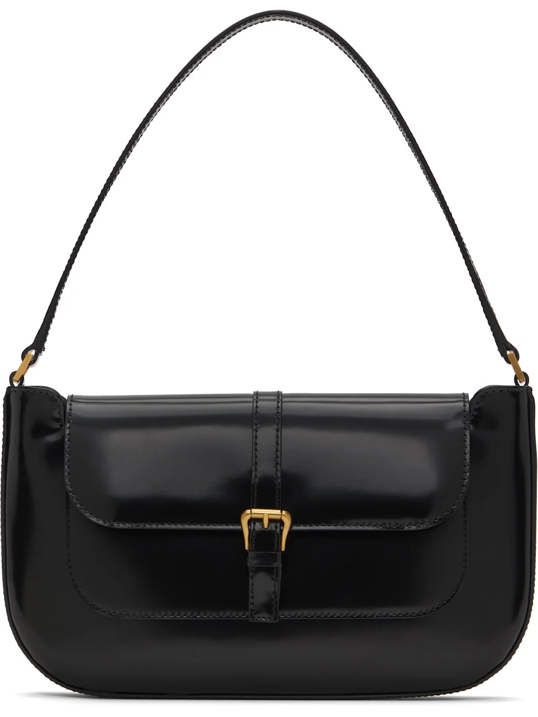 Patent leather shoulder bag. · LWG-certified leather · Fixed shoulder strap · Pin-buckle hardware at magnetic press-stud flap · Patch pocket at interior · Cotton twill lining · H6" x W10.75" x D1" Supplier color: Black Leather. Made in Bulgaria 252289F048004