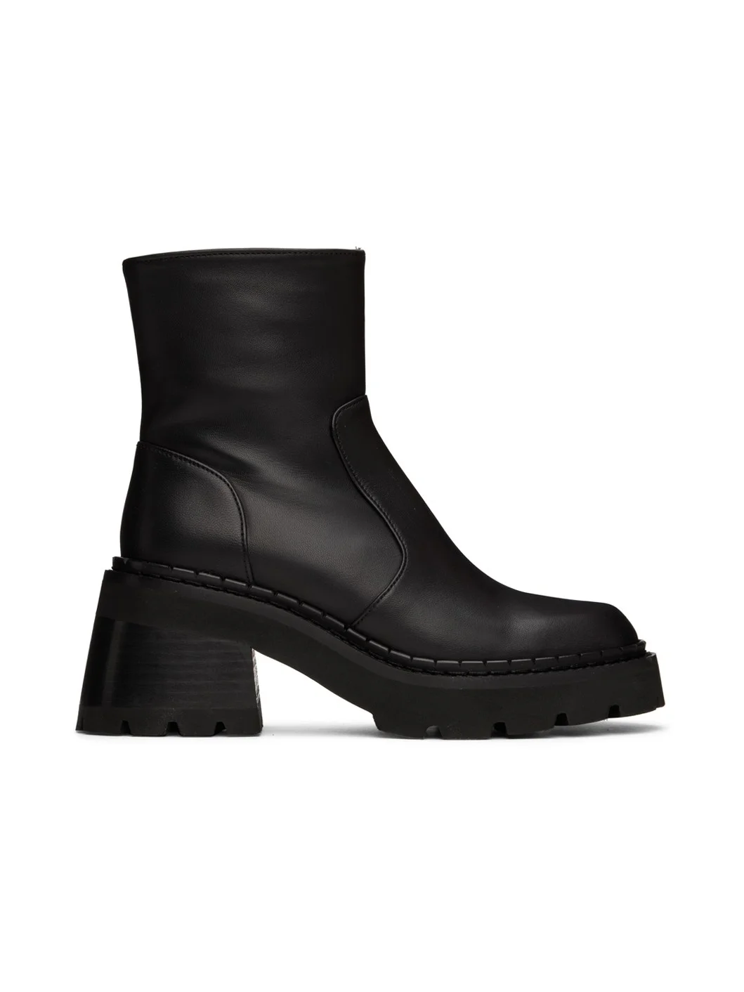 Ankle-high paneled buffed nappa leather boots in black. · Zip closure at inner side · Scalloped detailing at welt · Sculptural stacked leather block heel · Stacked foam rubber midsole · Treaded rubber outsole · Heel: H2.7 in Supplier color: Black Upper: leather. Sole: rubber.