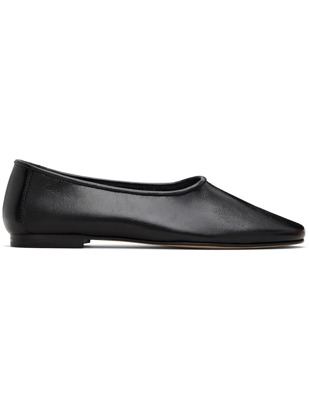 Crinkled leather ballerina flats. · LWG-certified leather · Suede lining · Rubber heel · Leather sole Supplier color: Black Upper: leather. Sole: leather, rubber. Made in Bulgaria 261289F118001