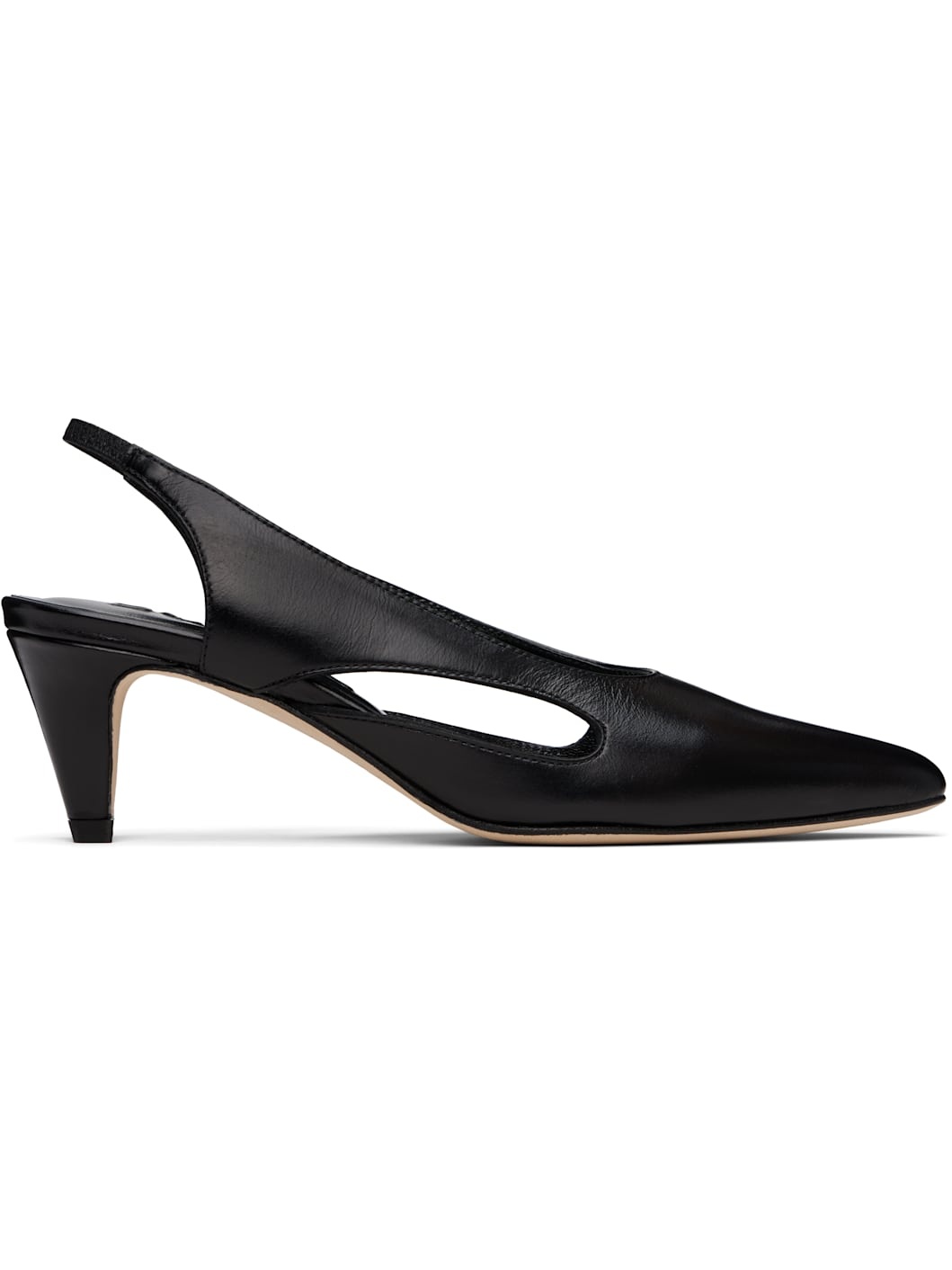 Grained calfskin heels in black. · Pointed toe · Cutout at sides · Partially elasticized slingback strap · Covered kitten heel with rubber injection · Nubuck sole · Heel: H2.5" Supplier color: Black Calfskin. Made in Bulgaria 251289F122004