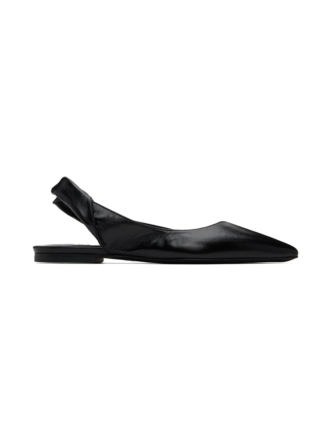 Polished lambskin flats in black. · Subtle wrinkling throughout · Pointed toe · Twisted detailing at slingback strap · Logo embossed at padded footbed · Rubber block heel · Polished leather sole Supplier color: Black Upper: lambskin. Sole: leather. Made in Portugal 242289F121002
