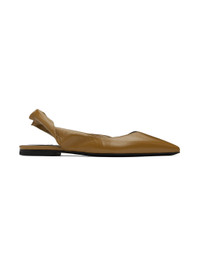 Polished lambskin loafers in brown. · Subtle wrinkling throughout · Pointed toe · Twisted detailing at slingback strap · Logo embossed at padded footbed · Rubber block heel · Polished leather sole Supplier color: Sparrow Upper: lambskin. Sole: leather. Made in Portugal 242289F121000