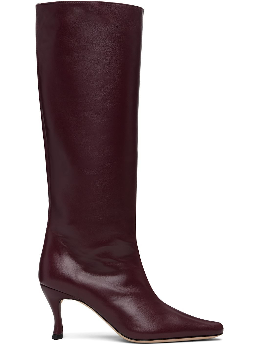 Knee-high grained nappa lambskin boots. · Pointed toe · Grained leather lining · Covered stiletto heel with rubber injection · Nubuck sole · Heel: H2.75" Supplier color: Sour cherry Upper: lambskin. Sole: leather. Made in Portugal 252289F115002