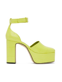 Croc-embossed leather heels in green. · Square toe · Pin-buckle ankle strap · Logo embossed padded leather footbed · Covered block heel with rubber injection · Covered platform midsole · Heel: H4 in · Nubuck sole · Platform: H1.75 in Supplier color: Apple Upper: leather. Sole: leather, rubber. Made in Portugal 231289F122034