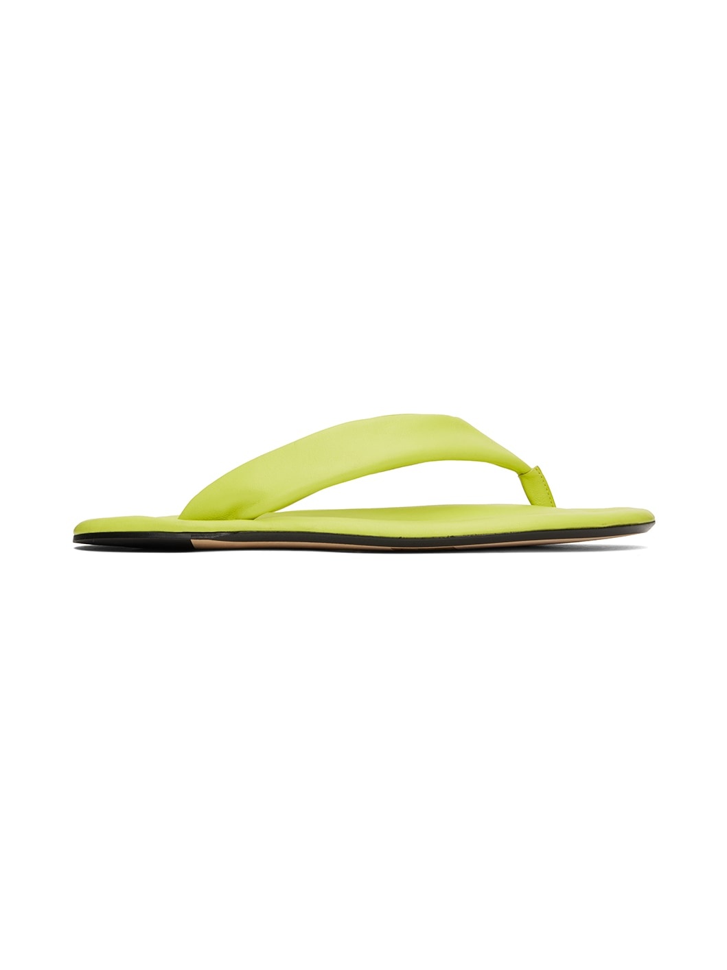 Buffed nappa leather slip-on sandals in green. · Padded thong-style strap at open round toe · Logo embossed at padded leather footbed · Leather sole with rubber injection at heel Supplier color: Apple Upper: leather. Sole: leather, rubber. Made in Portugal 231289F124014