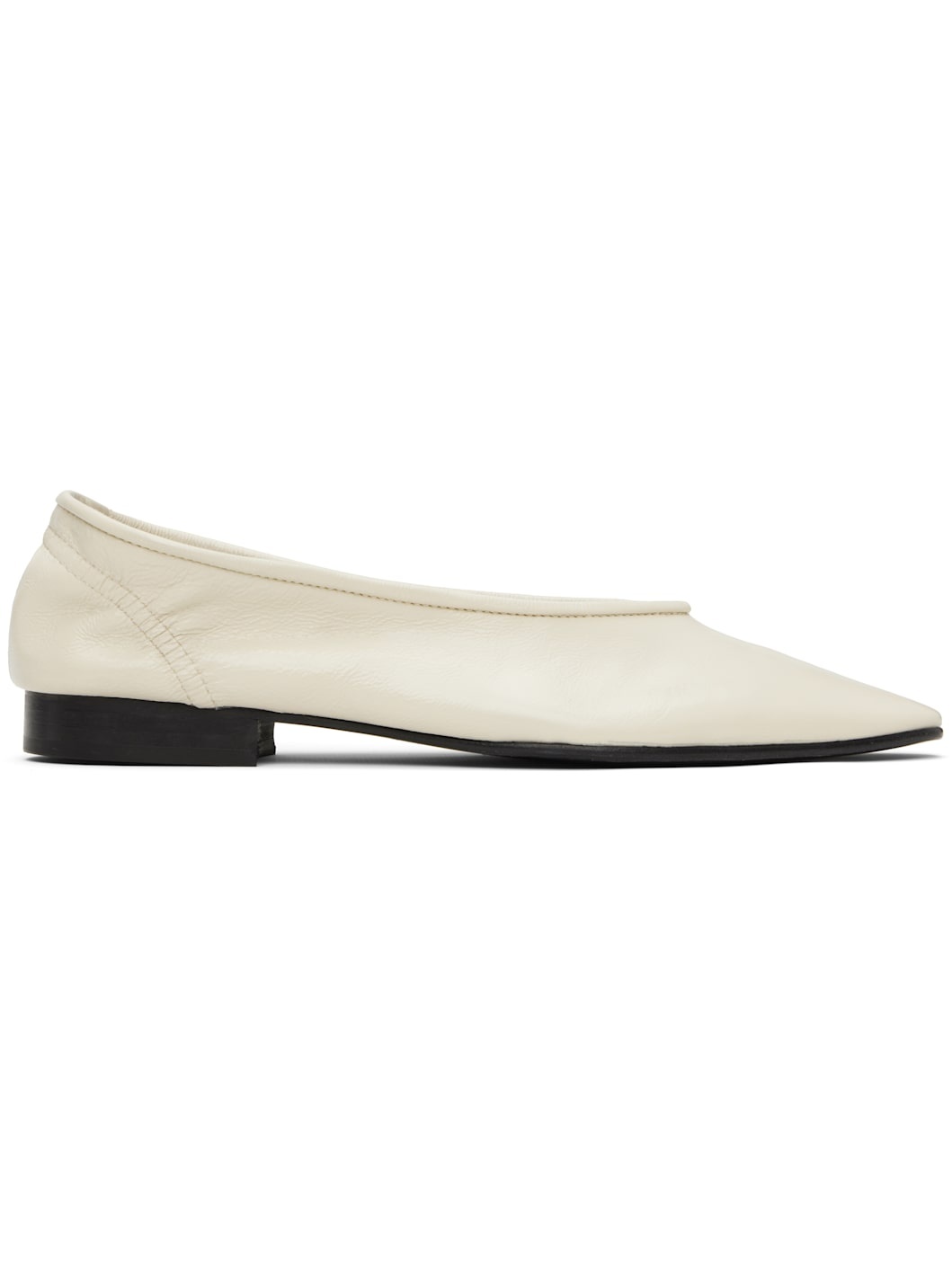 Creased lambskin ballerina flats in off-white. · Pointed toe · Piping at collar · Elasticized heel counter · Stacked leather heel with rubber injection · Polished leather sole Supplier color: Limewash Upper: lambskin. Sole: leather. Made in Bulgaria 251289F118000