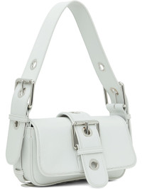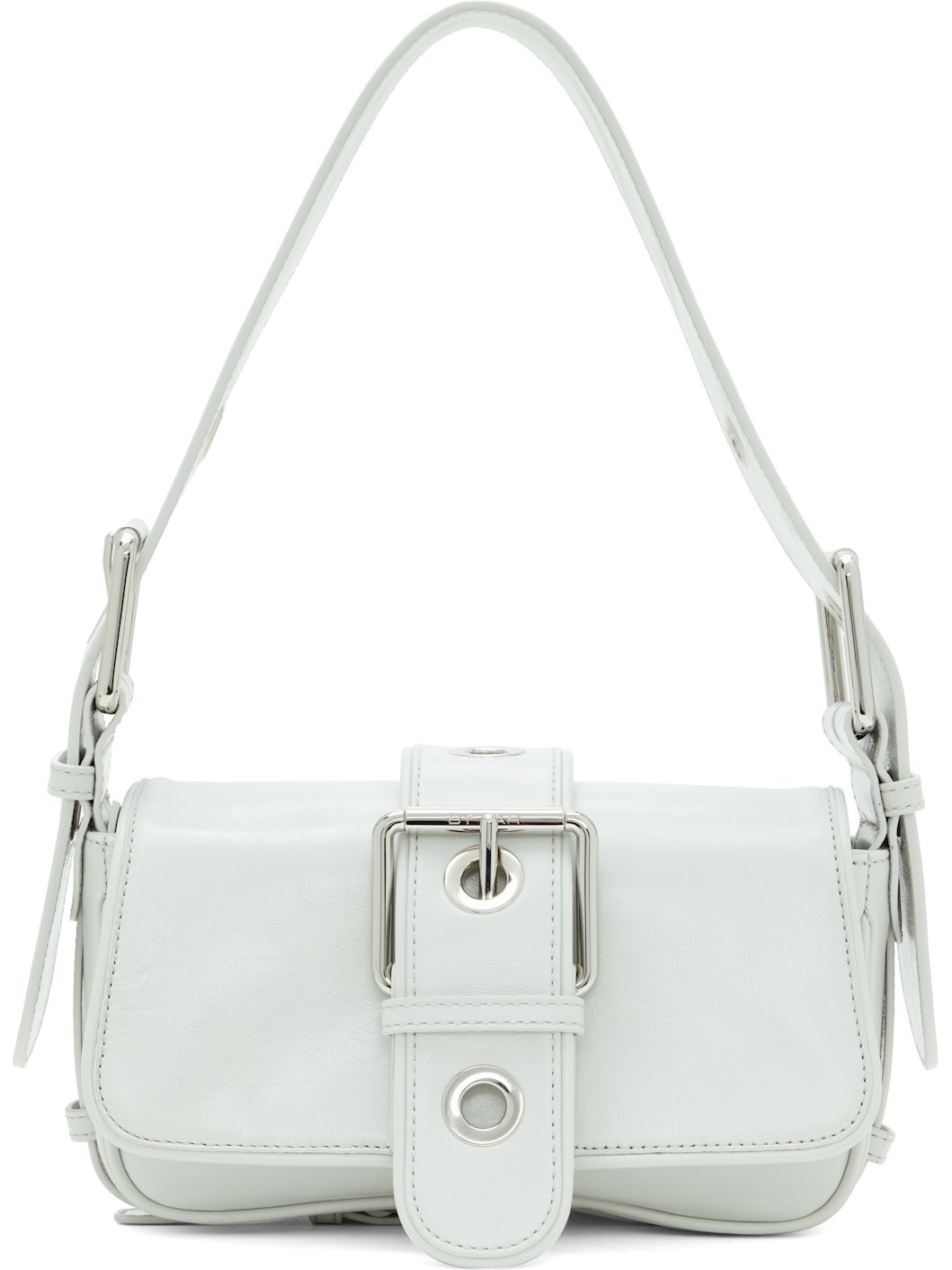 Creased leather shoulder bag in off-white. · Adjustable shoulder strap · Adjustable and detachable crossbody strap · Pin-buckle strap at base · Logo-engraved pin-buckle strap at magnetic press-stud flap · Zip pocket at interior · Poplin lining · Logo-engraved silver-tone hardware · H4.25" x W8.5" x D2.75" Supplier color: Burrata Leather. Made in Bulgaria 251289F048031