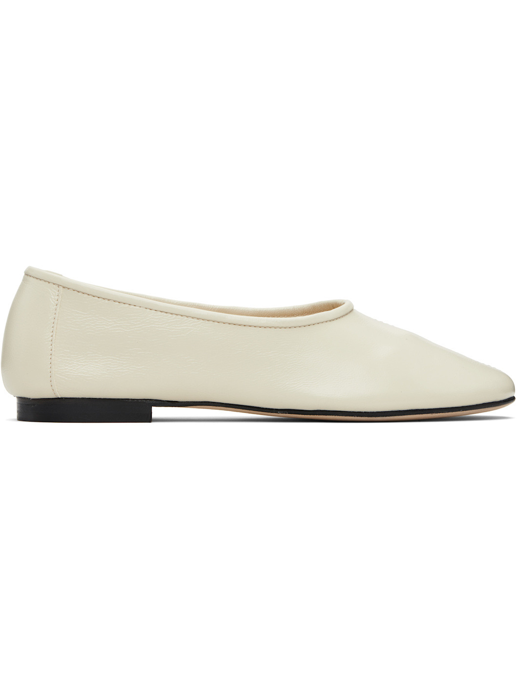 Creased lambskin ballerina flats. · LWG-certified lambskin · Central seam at vamp · Suede lining · Stacked leather heel with rubber injection · Nubuck sole Supplier color: Limewash Upper: lambskin. Sole: leather. Made in Bulgaria 252289F118000