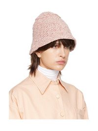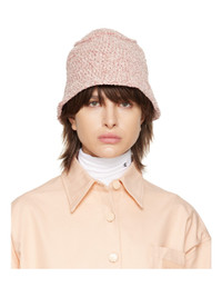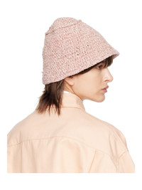 Smocked viscose-blend chenille bucket hat in pink. Logo-embossed leather patch at face. Supplier color: Icy pink 87% viscose, 13% nylon. Made in Bulgaria 231289F015005