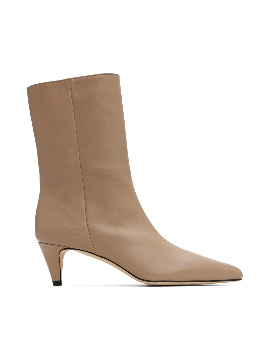 Mid-calf nappa lambskin slip-on boots in taupe. · Pointed toe · Covered cone heel with rubber injection · Suede sole · Heel: H2" Supplier color: Taupe Upper: lambskin. Sole: leather. Made in Bulgaria 242289F113003