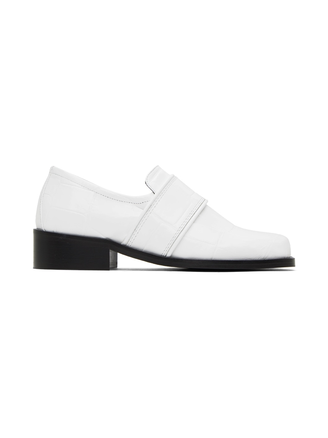 Croc-embossed leather loafers in white. Hand-stitched detailing throughout. · Square toe · Strap at vamp · Grained leather lining · Stacked leather heel with rubber injection · Leather sole · Heel: H1.5 in Supplier color: White Upper: leather. Sole: leather, rubber. Made in Portugal 232289F121004