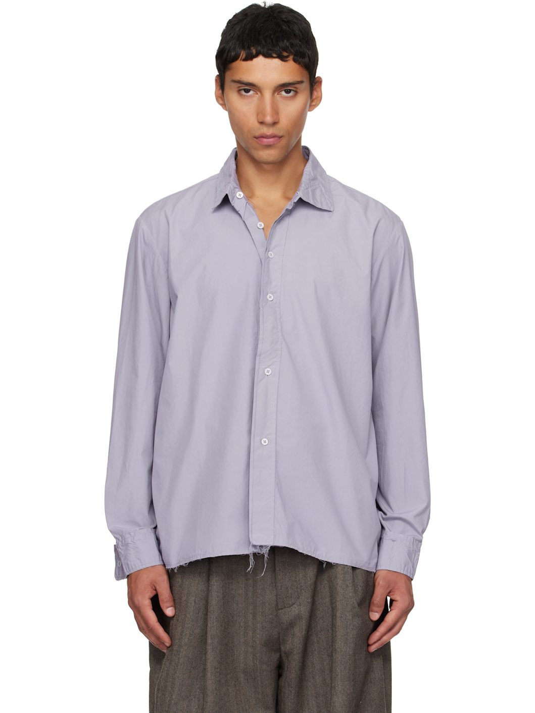 Cotton poplin shirt. · Raw edges and folded detailing throughout · Spread collar · Button closure · Buttoned cuffs · Box pleat at back yoke Supplier color: Purple 100% cotton. Made in Portugal 252109M192004