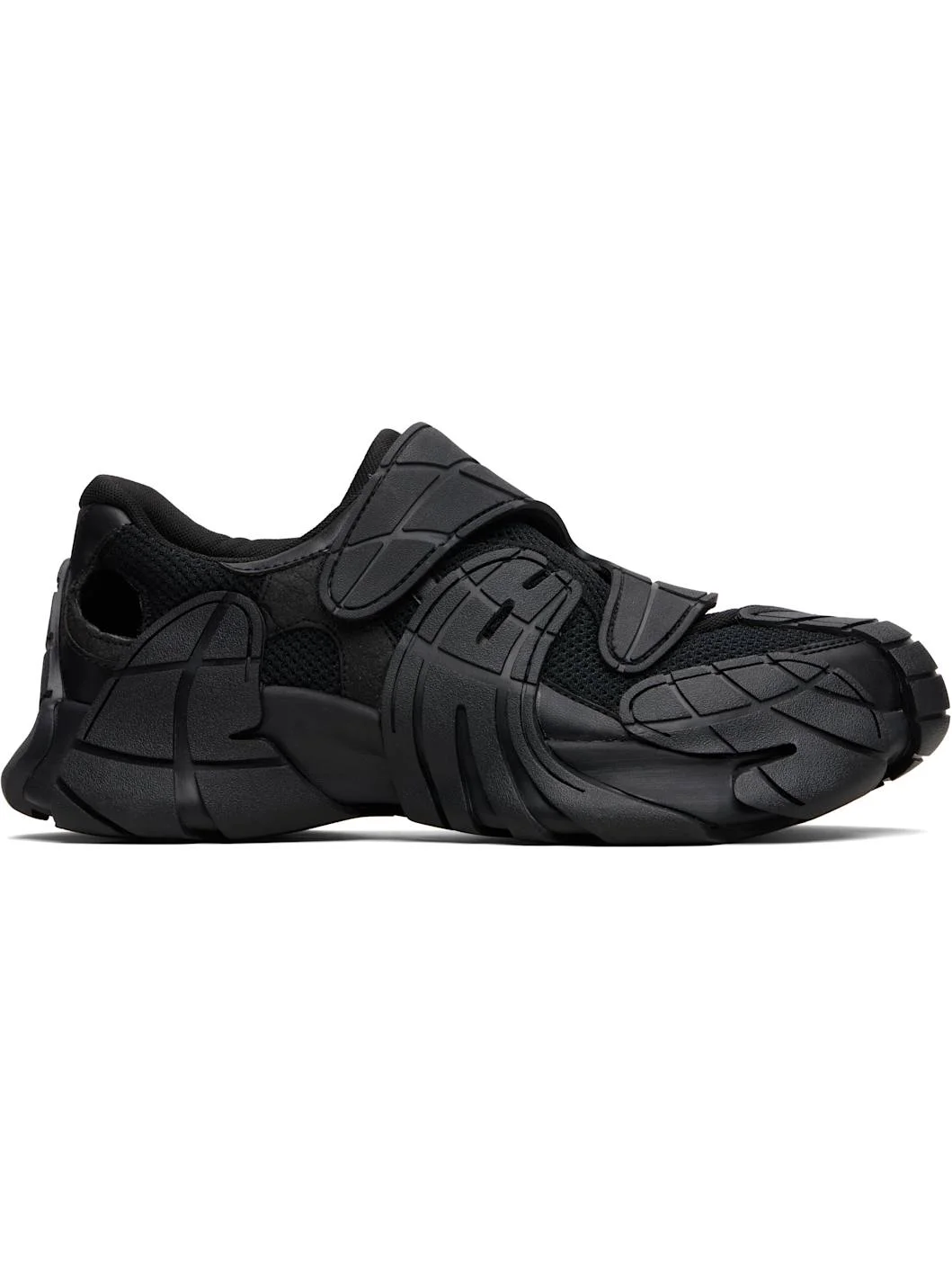 Low-top Sorona® mesh sneakers. · HyphaLite™ and MIRUM® faux-leather trim throughout · Textured rubber overlays throughout · Offset velcro closure · Padded tongue and collar · Cutouts at heel collar · Removable cushioned OrthoLite® Recycled™ footbed · Mesh lining · Foam rubber midsole · Treaded rubber sole Supplier color: Black Upper: textile, synthetic, rubber. Sole: rubber. Made in Viet Nam 252552M237002