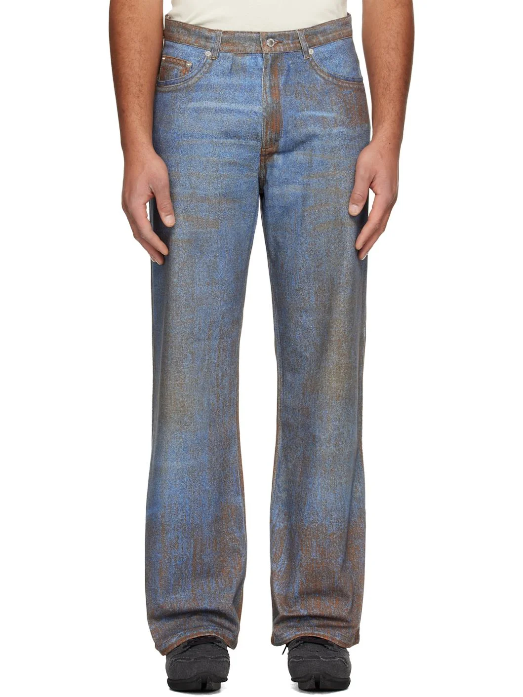 Non-stretch organic cotton denim jeans. · Trompe l'oeil graphic printed throughout · Loose-fit, straight-leg · Mid-rise · Belt loops · Five-pocket styling · Zip fly · Logo patch at back waistband Supplier color: Multicolor 100% organic cotton. Made in Portugal 252552M186002