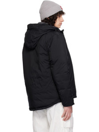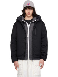 Packable down-filled nylon ripstop jacket. Lightweight, water-repellent, wind-resistant, and durable. · Bungee-style drawstring at hood · Stand collar · Two-way zip closure · Zip pockets · Concealed bungee-style drawstring at hem · Embroidered logo patch at sleeve · Power Stretch® jersey cuffs · Zip pocket and patch pocket at interior · Partial nylon ripstop and quilted satin lining Part of the Black Label collection. Supplier color: Black Fill: 90% duck down, 10% duck feather. Body: 100% polyamide. Lining 1: 100% polyester. Lining 2: 100% polyamide. Made in Canada 241014M178036