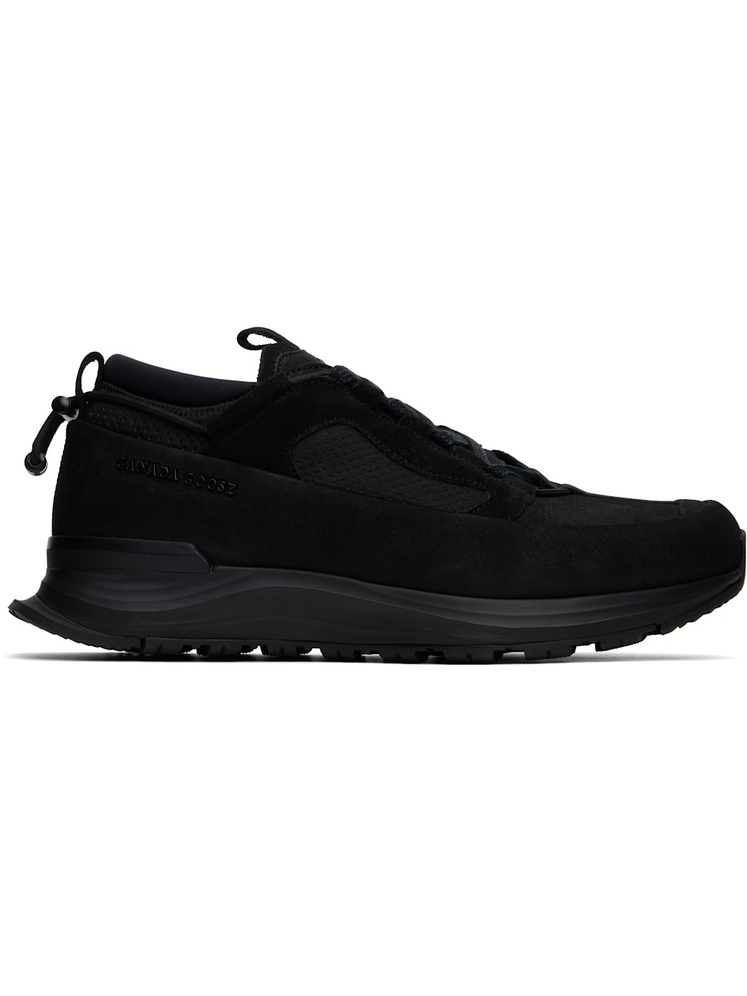Low-top paneled suede and nubuck sneakers in black. · Waterproof · Lace-up closure · Cord-lock ankle drawstring · Padded sock-style collar · Logo hardware at outer side · Pull-loop at heel collar · HDry® jersey lining · Microfibre onSteam® footbed · Rubber heel stabilizer at foam rubber midsole · Treaded rubber sole Supplier color: Black/Black
