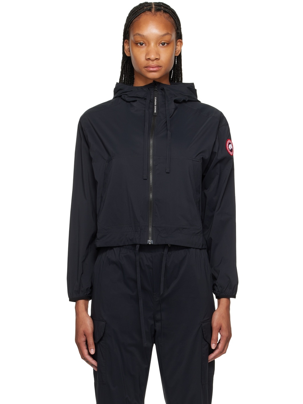Lightweight nylon ripstop jacket. · Drawstring at hood · Zip closure · Patch pockets · Cord-lock drawstring at cropped hem · Embroidered logo patch at sleeve · Elasticized cuffs · Unlined Supplier color: Black 100% polyamide. Made in Albania 242014F063001