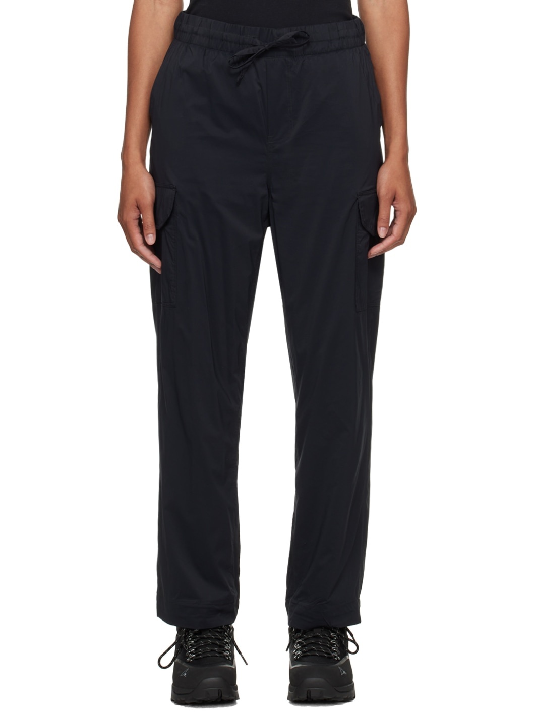 Nylon ripstop trousers. · Drawstring at elasticized waistband · Three-pocket styling · Mock-fly · Cargo pocket at outseams · Embroidered logo patch at back · Full mesh lining Supplier color: Black Body: 100% polyamide. Lining: 100% polyester. Made in Albania 242014F087000