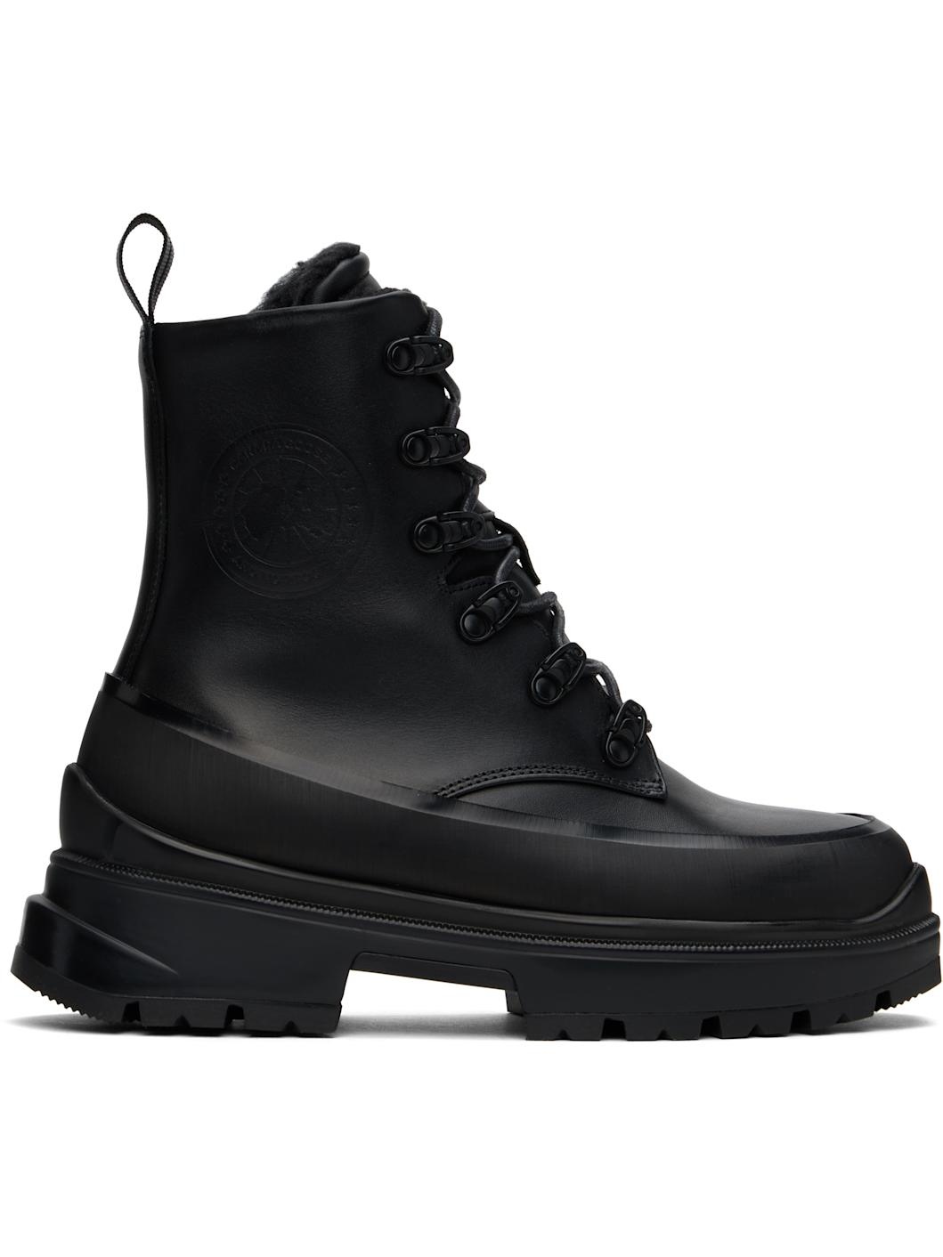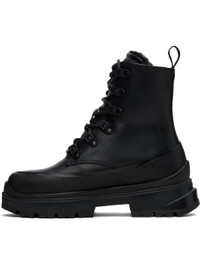 Ankle-high buffed leather boots in black. · Rubber trim throughout · Lace-up closure · Logo embossed at outer side · Reflective pull-loop at heel collar · Shearling lining · Serrated edge at welt · Treaded rubber sole Supplier color: Black Upper: leather. Sole: rubber. Made in Portugal 242014F113004