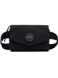 Padded Cordura® nylon taffeta belt bag. · Water-repellent · Adjustable and detachable crossbody strap · Embroidered logo patch at face · Press-stud flap · Zip closure · Patch pocket at interior · Quilted nylon satin lining · Logo-engraved hardware · H5.5" x W8" x D2" Supplier color: Black Body: 100% polyamide. Trim: 100% polyester. Fill: 100% polyester. Lining: 100% polyamide. Made in Canada 252014M171000