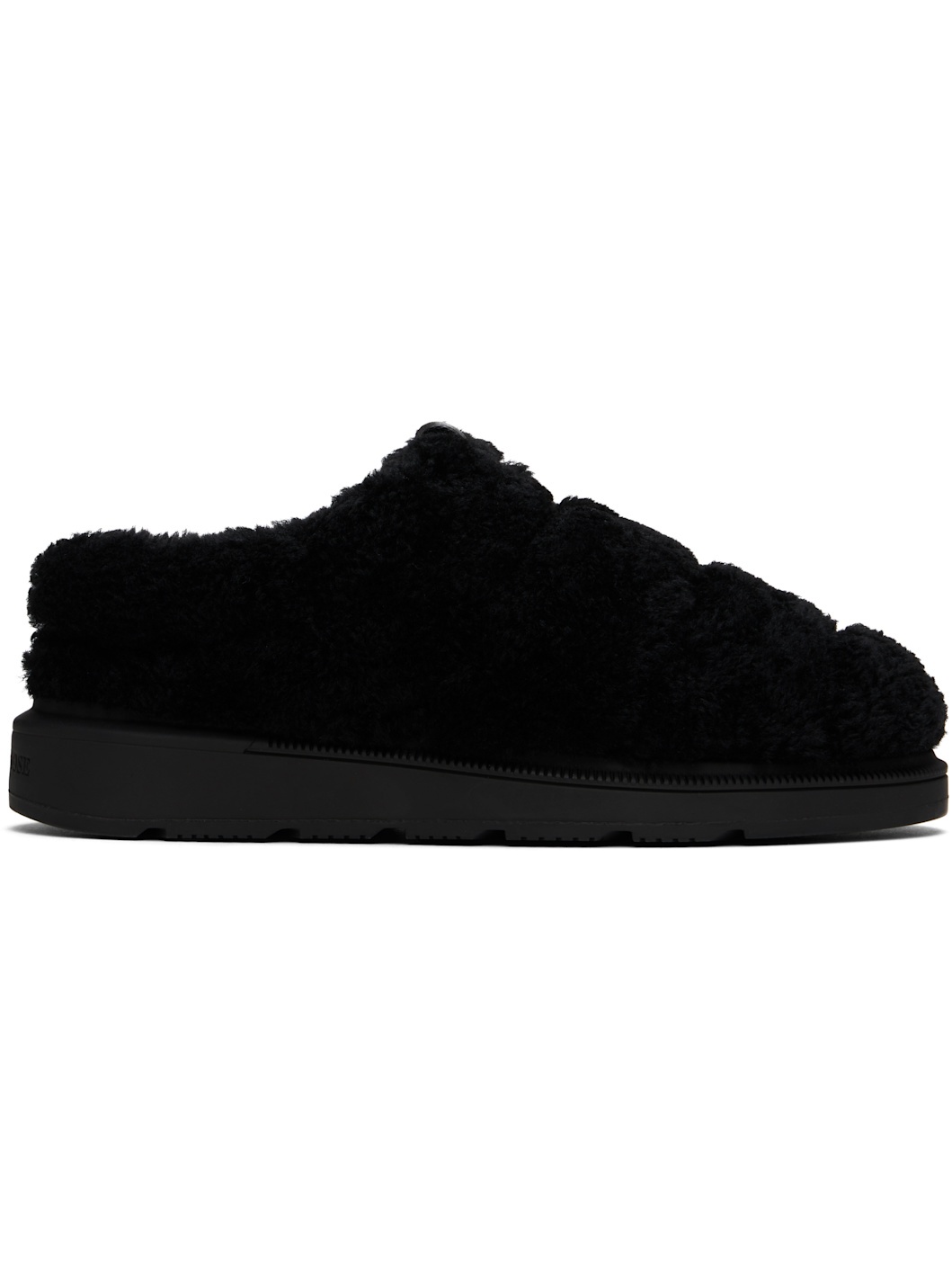 Shearling mules in black. · Logo hardware and pull-loop at vamp · Webbing trim at heel collar · Logo embossed at heel · Serrated edge at welt · Treaded rubber sole Supplier color: Black Upper: sheepskin. Sole: rubber. Made in Portugal 242014F121000