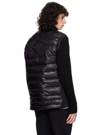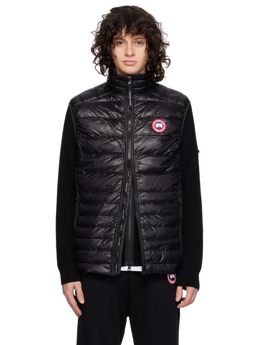 Packable down-filled quilted HyBridge® Lite nylon ripstop and stretch polyester-blend fleece vest. Lightweight, water-repellent, and durable. · Thermal Mapping® technology · Paneled construction · Stand collar · Two-way zip closure · Embroidered logo patch at chest · Zip pockets · Elasticized trim at armscyes · Patch pocket at interior · Fully lined Supplier color: Black/Noir Fill: 90% goose down, 10% goose feather. Body 1: 100% polyamide. Body 2: 55% polyester, 39% polyamide, 6% elastane. Lining: 100% polyamide. Made in Canada 241014M178027