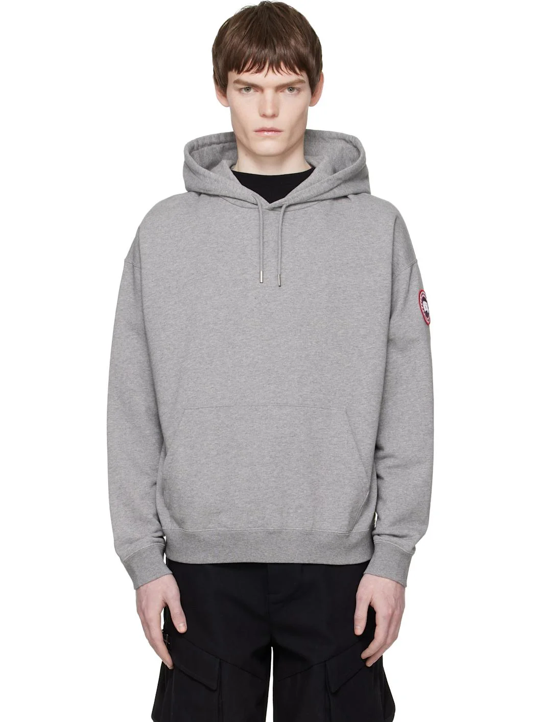 Organic cotton French terry hoodie. · Drawstring at hood · Kangaroo pocket · Rib-knit hem and cuffs · Dropped shoulders · Embroidered logo patch at sleeve Supplier color: Stone heather 100% cotton. Made in Portugal 261014M202009