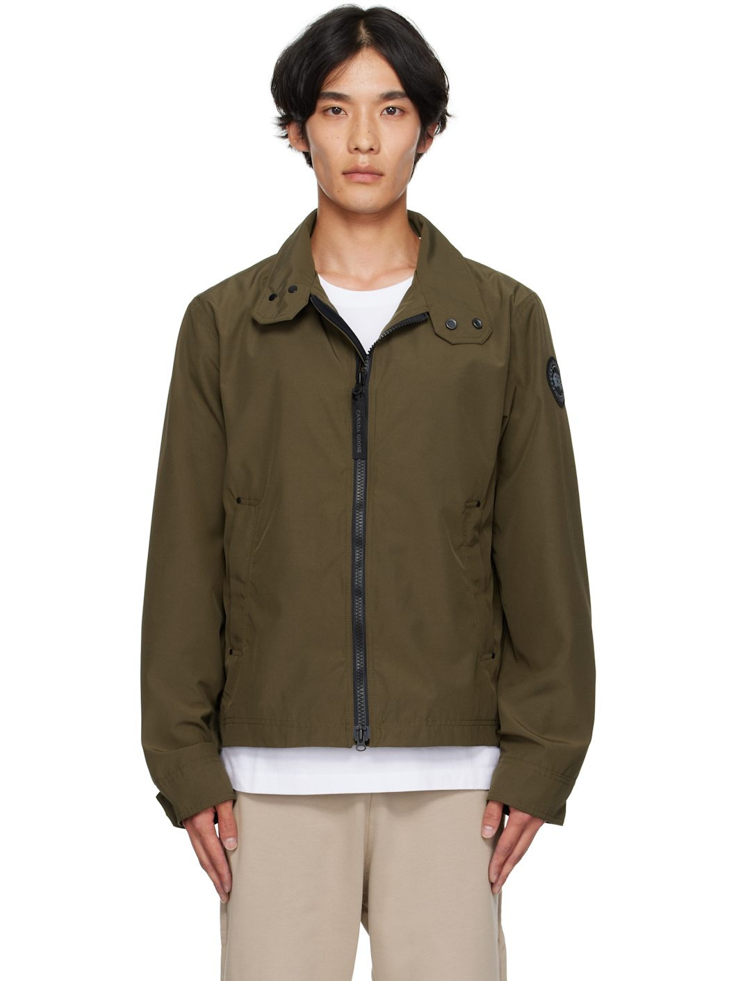 Arctic Tech® cotton-blend canvas jacket. · Water-repellent · Press-stud stand collar · Two-way zip closure · Zip pockets at waist · Embroidered logo patch at sleeve · Adjustable press-stud barrel cuffs · Reflective stripes at back collar · Full satin lining Part of the Black Label collection. Supplier color: Military Green 84% polyester, 16% cotton. Made in Canada 252014M180008